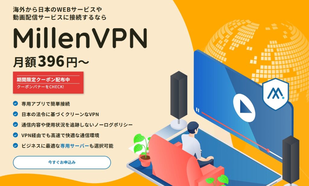 そこで注目されているのが、VPNサービスの「MillenVPN」です。