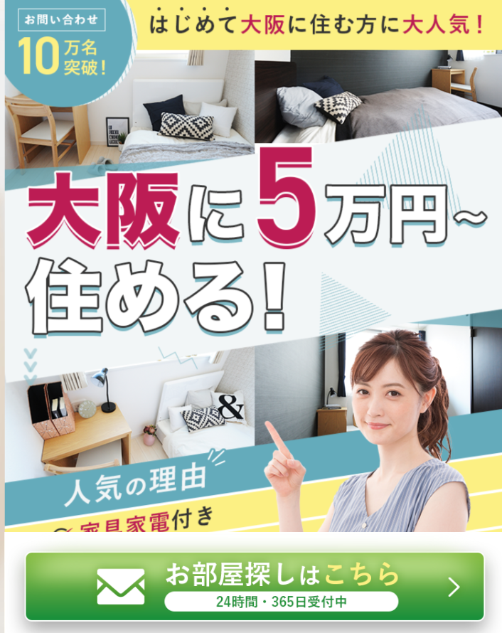 大阪で家具家電付き物件を探すと、相場は月10万円以上。
