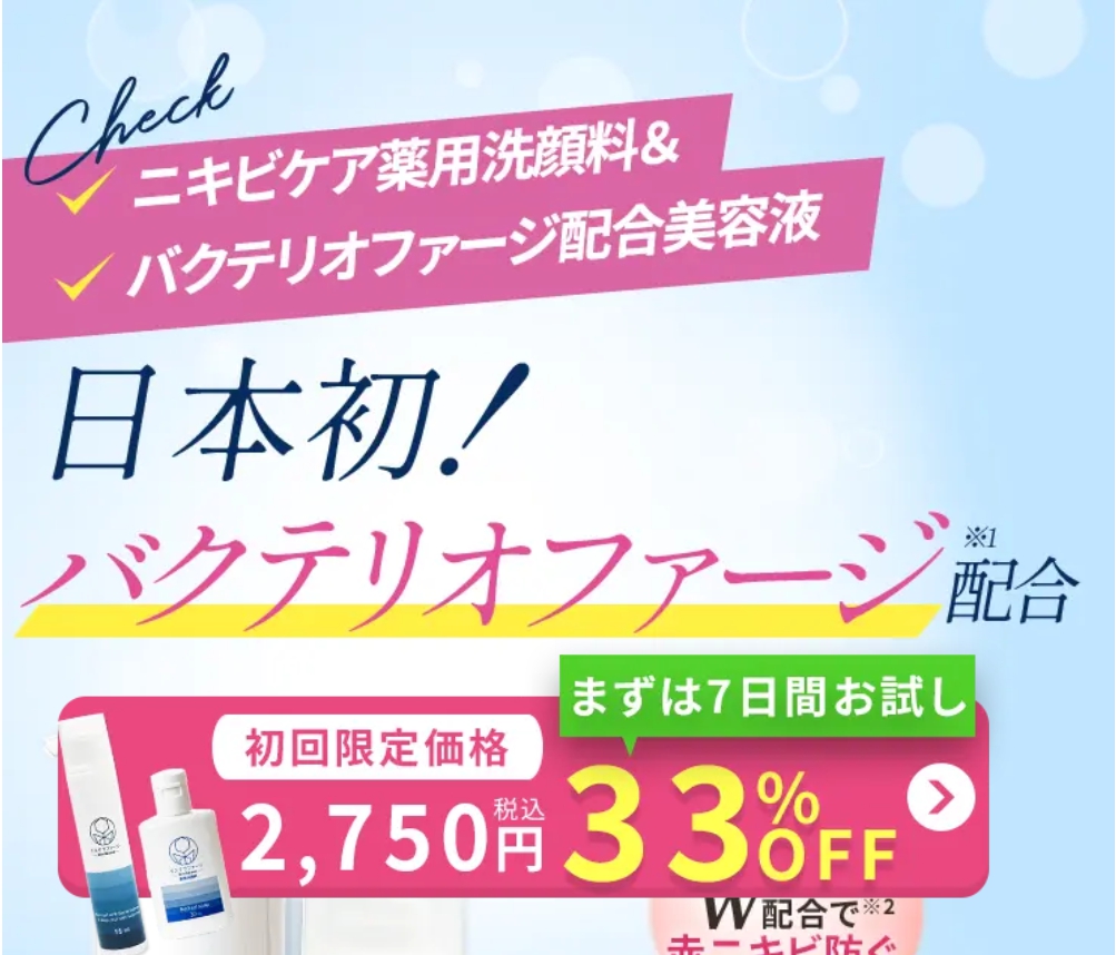 当サイトでのチェックポイントは「刺激の少なさ」と「継続しやすい使用感」。ニキビケアは短期勝負ではなく日々の習慣づくりが大事です。バクテリオファージの発想はユニークですが、ほかの保湿や生活習慣の改善と併せて使うことをおすすめします。