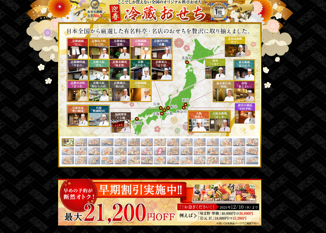人気おせちは毎年売り切れ必至。まずは早割り期間中に公式サイトをチェックして、お気に入りの一品を見つけてください!