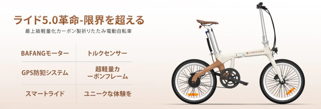 通勤や都市部での移動がメインの方には、コンパクトな「ADO Air 20 Pro」がおすすめです。折りたたみ可能な軽量設計で、電車や車への積み込みも簡単。自動変速・カーボンベルト・スマートディスプレイなど、基本性能はしっかりと備えており、最大航続距離は100kmと長距離にも対応可能です。