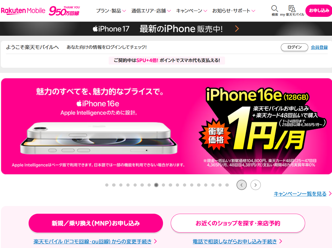 - 楽天IDを用意し、乗り換えキャンペーンページを開く