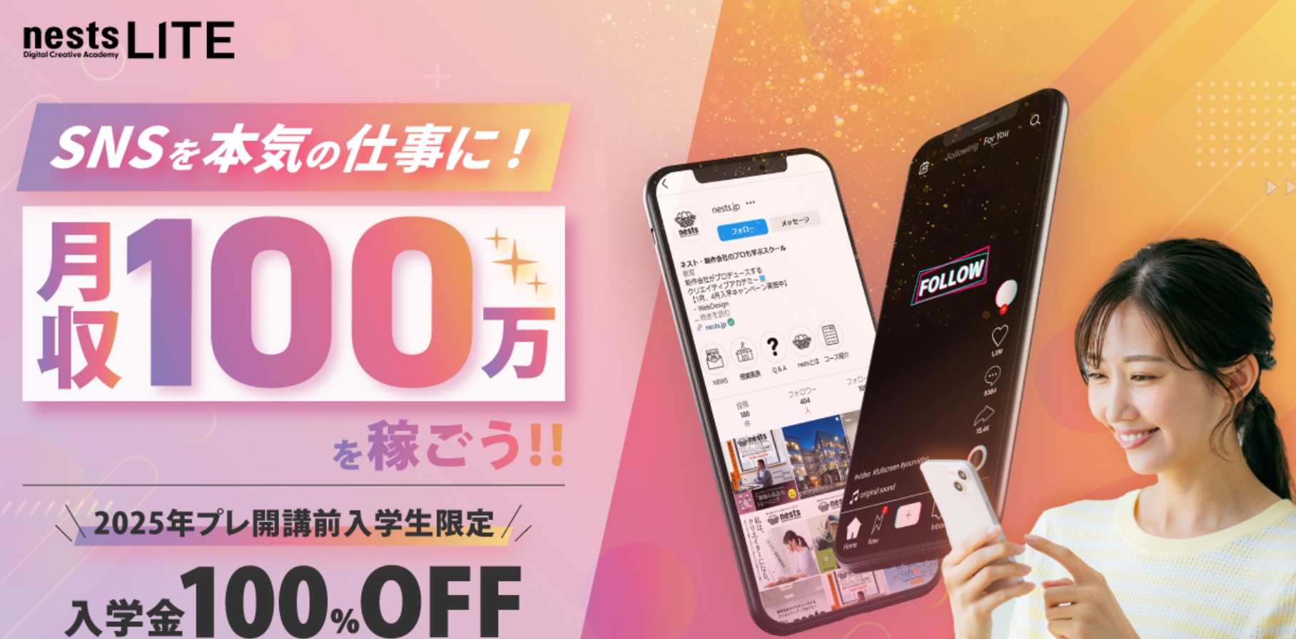 あなたも今すぐネストLITEで、SNSマーケティングの世界に飛び込みましょう。未経験からプロレベルのスキルを習得し、あなたのキャリアや副業を加速させるチャンスです。