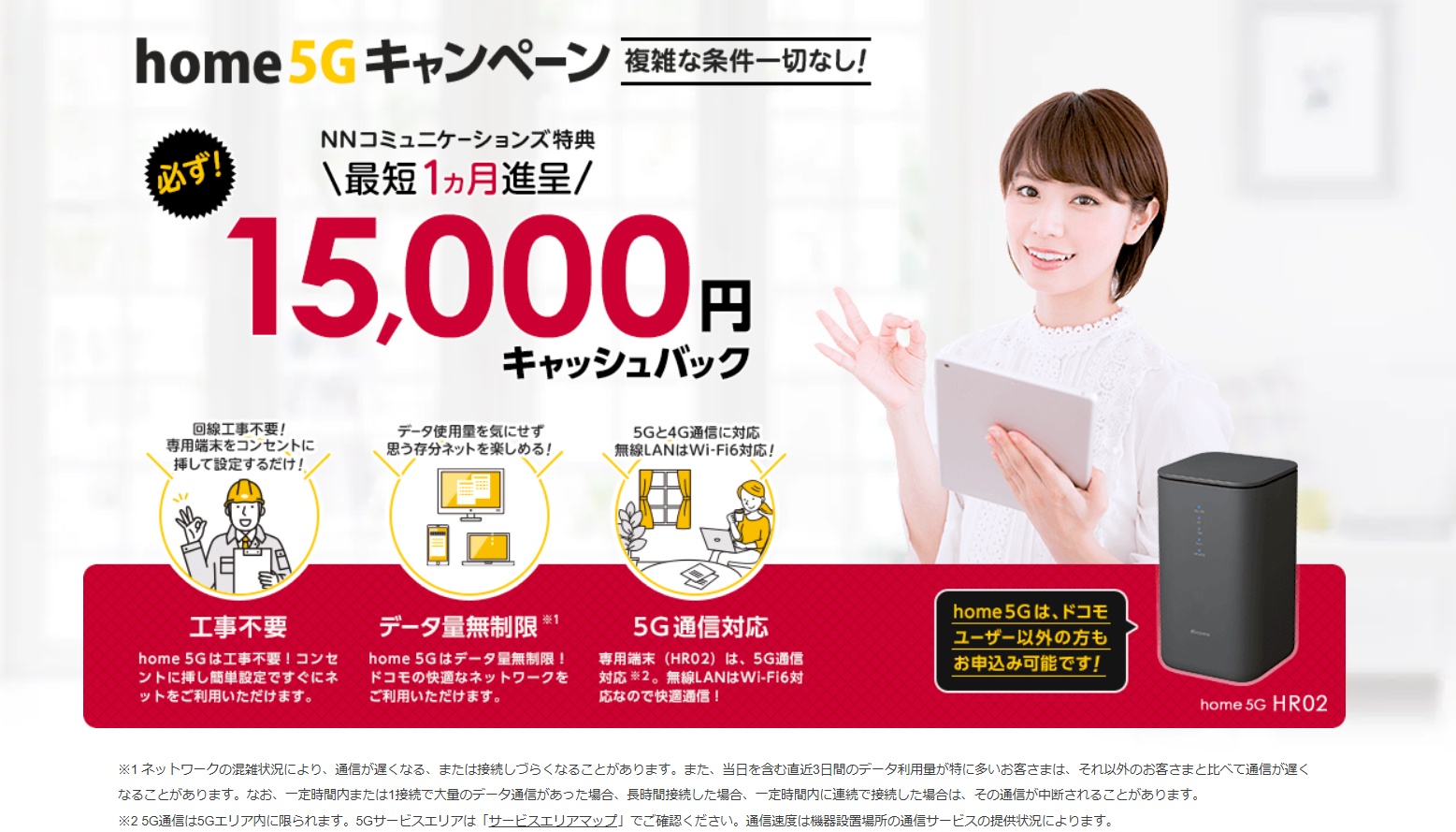 ドコモユーザー必見!最新5G対応ホームルーター「home 5G」でおうちネットが快適に!【NNコミュニケーションズ限定キャッシュバック】