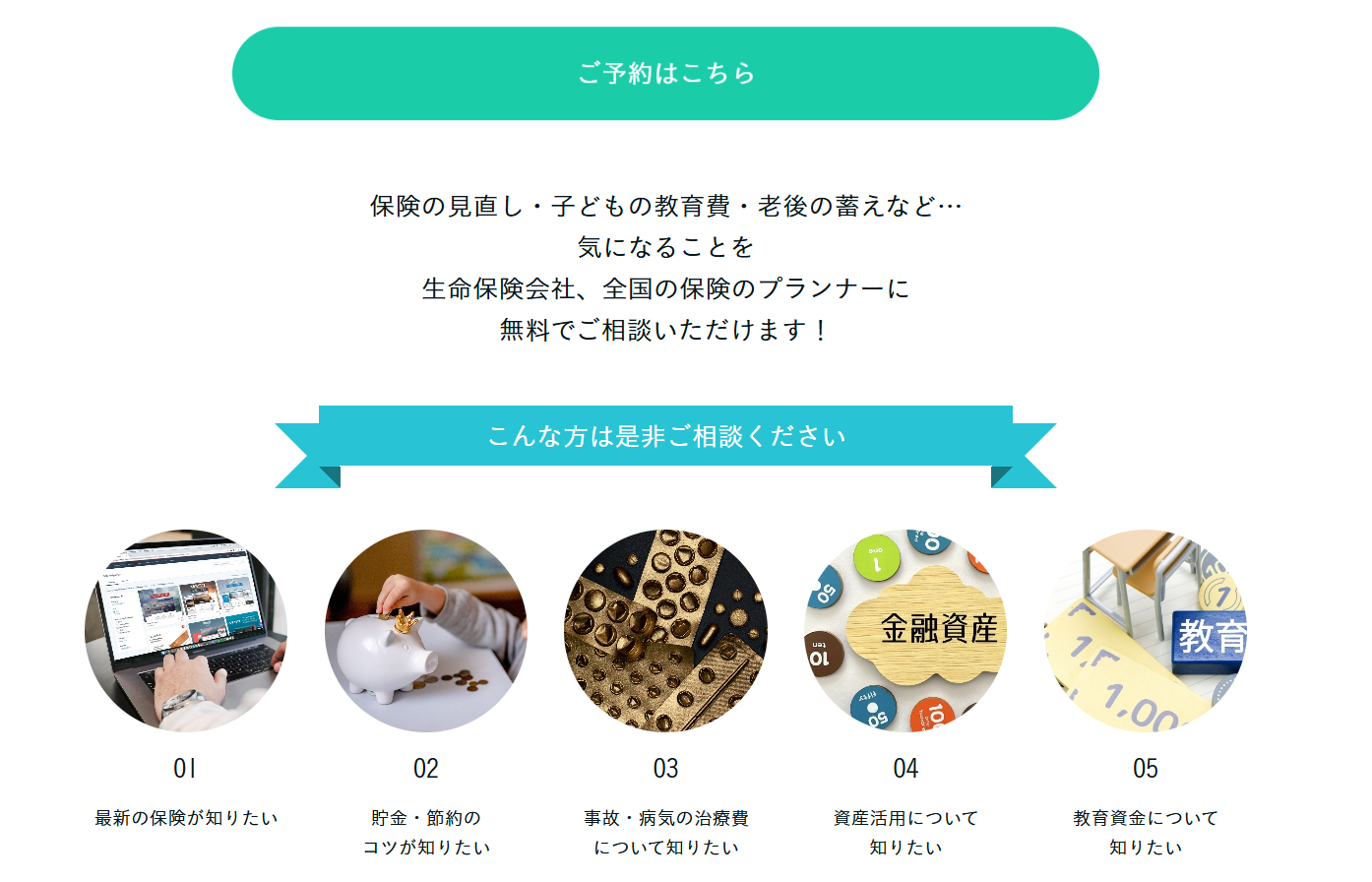 - 学資保険・医療保険・死亡保障など複数社を比較して提案