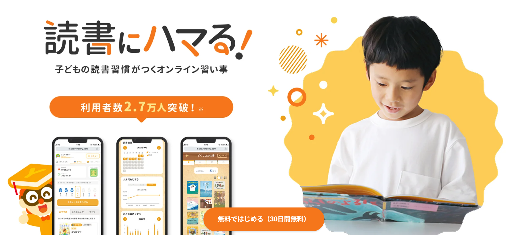 「ヨンデミー」は、お子さんの読書習慣を楽しく身につけられるオンラインプログラムです。