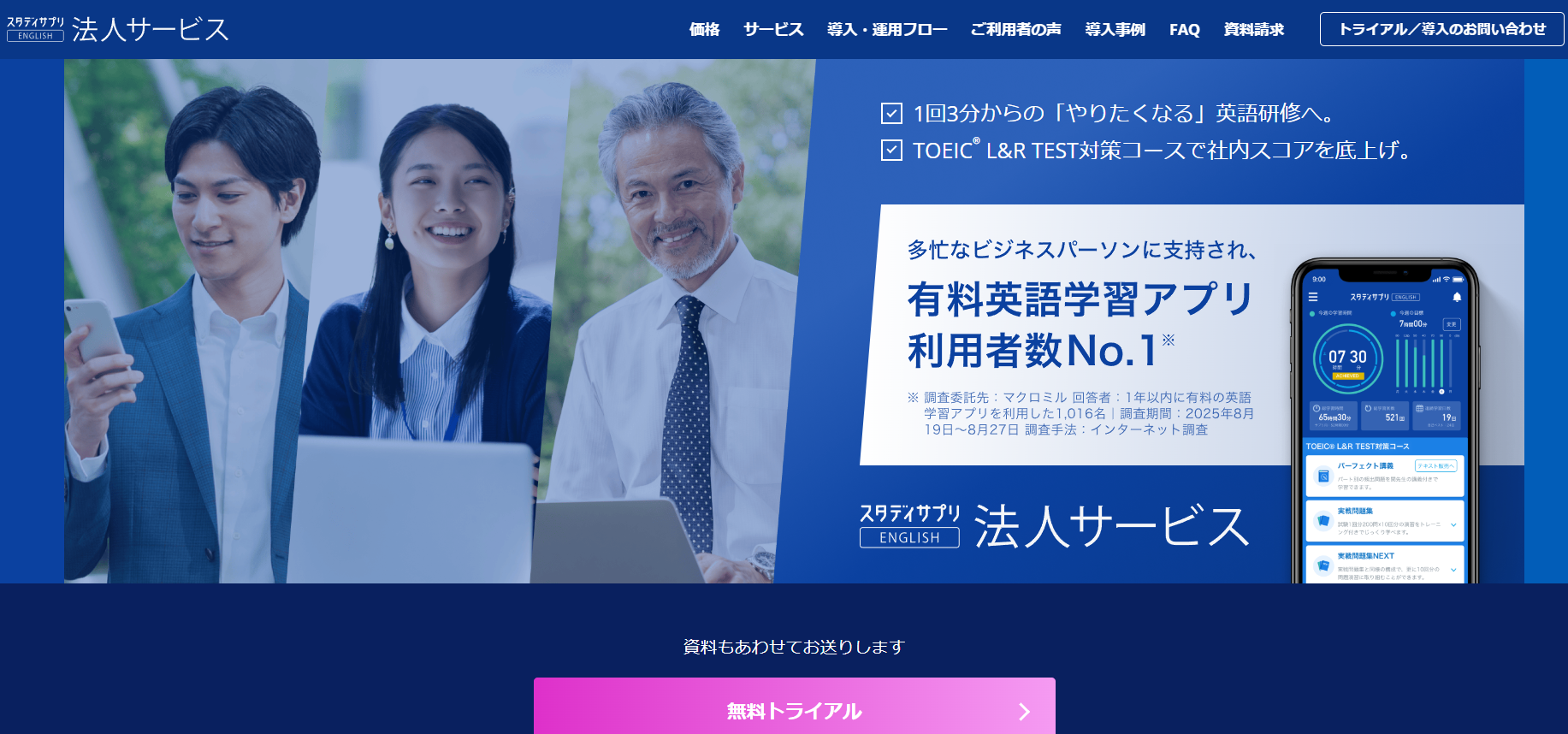 ▼スタディサプリENGLISH法人向け英語研修サービスはこちら