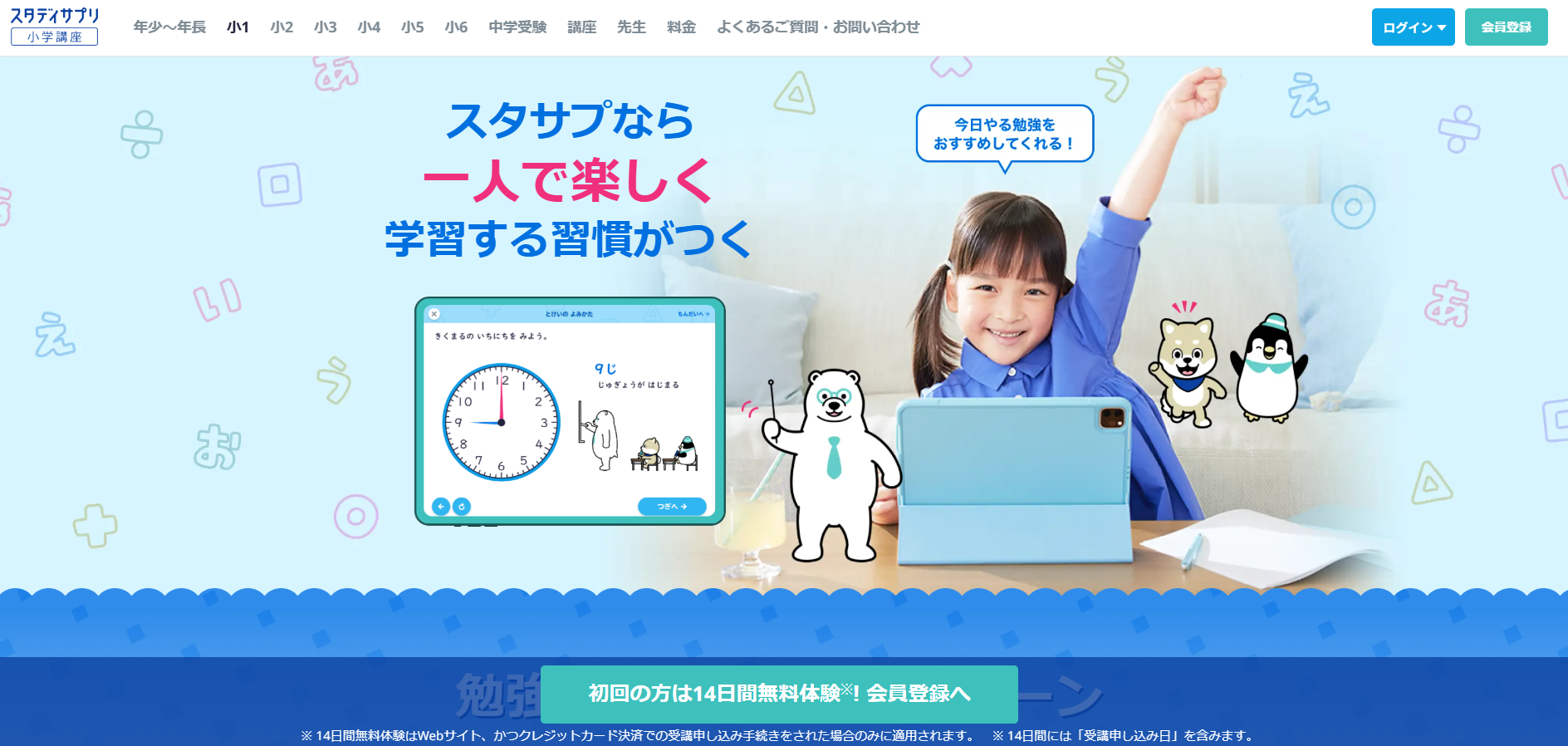 スタディサプリ小学講座は、自宅で手軽に学習しながら確実に理解を深められるオンライン学習サービスです。動画授業・演習・復習のサイクルを自分のペースで回せるため、塾に通わずとも学力向上が期待できます。これから学習を始める方や、苦手克服を目指す小学生に特におすすめです。