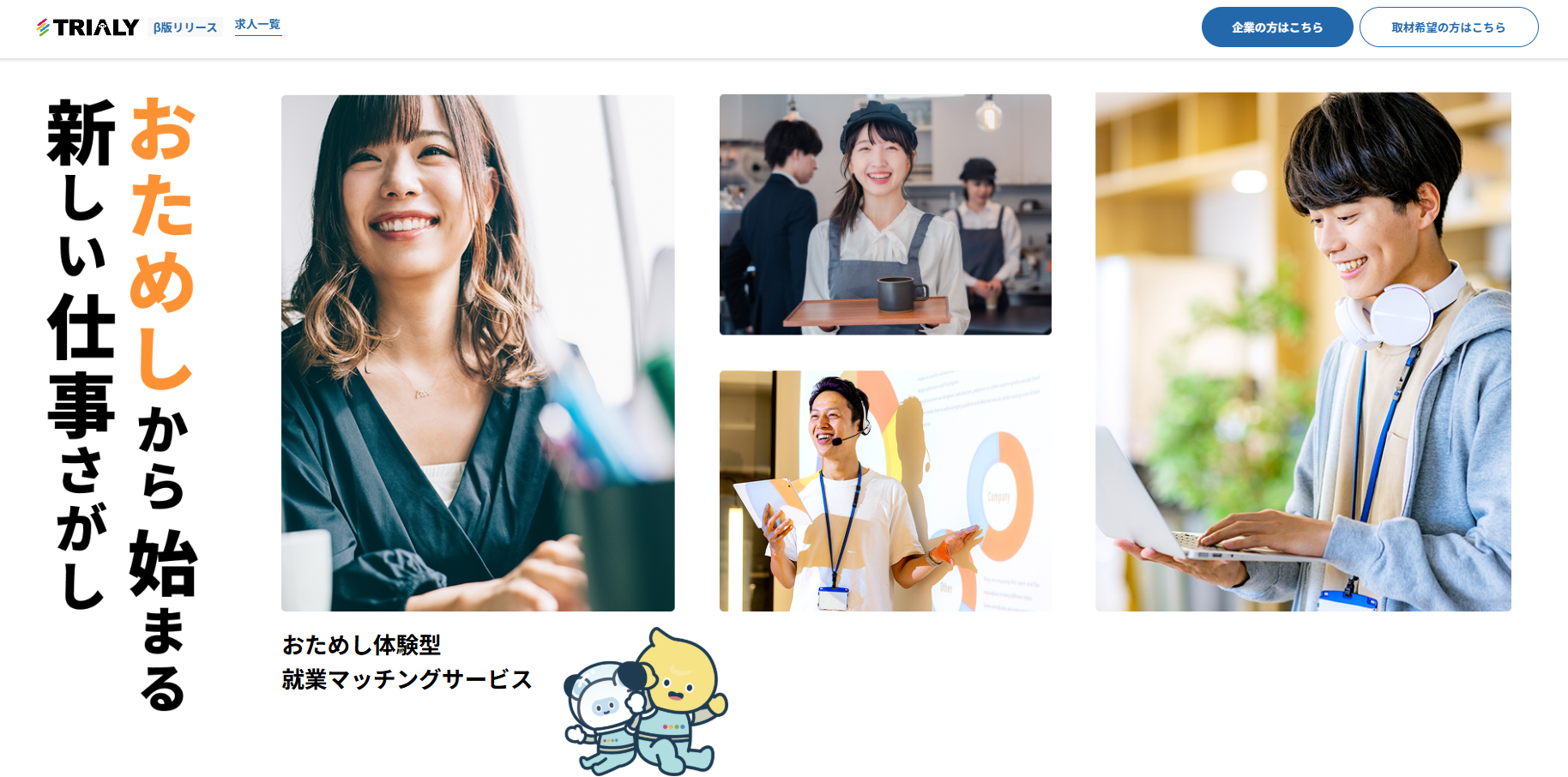 TRIALYは、企業での実務体験を通じて、自分に合う職種や職場を見つけることができる体験型の就業サービスです。従来の就職活動や転職活動では、履歴書や面接だけでは分からない社風や仕事内容も、実際の体験を通して確認できます。