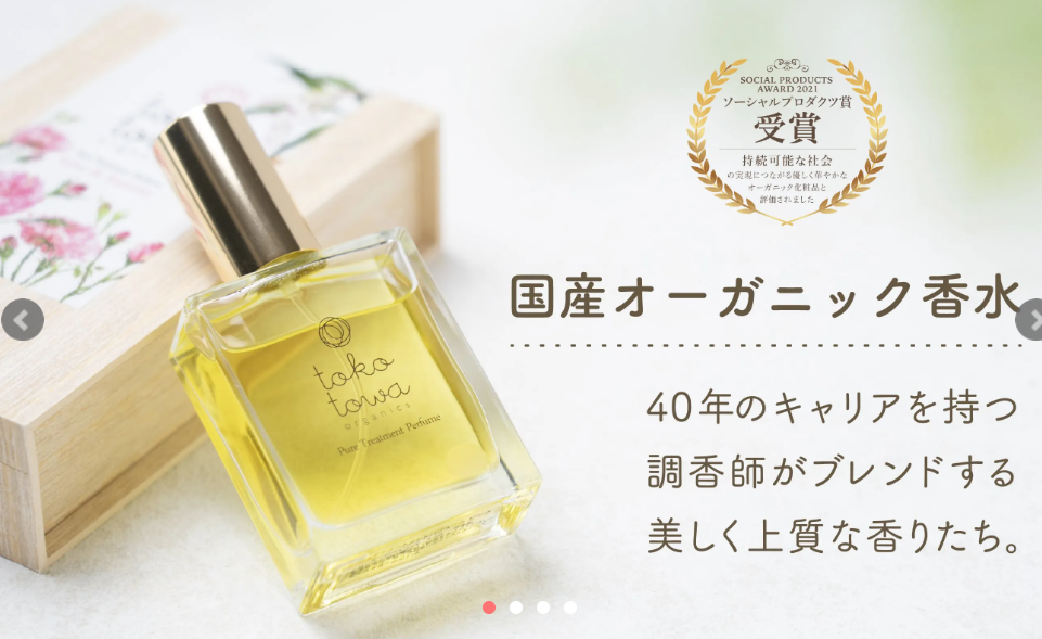 トコトワオーガニクスは「美しく香しく。日本の植物とオーガニックの植物の香り・色彩の力で心地よい毎日を」をコンセプトにした国産オーガニック香水・コスメブランドです。