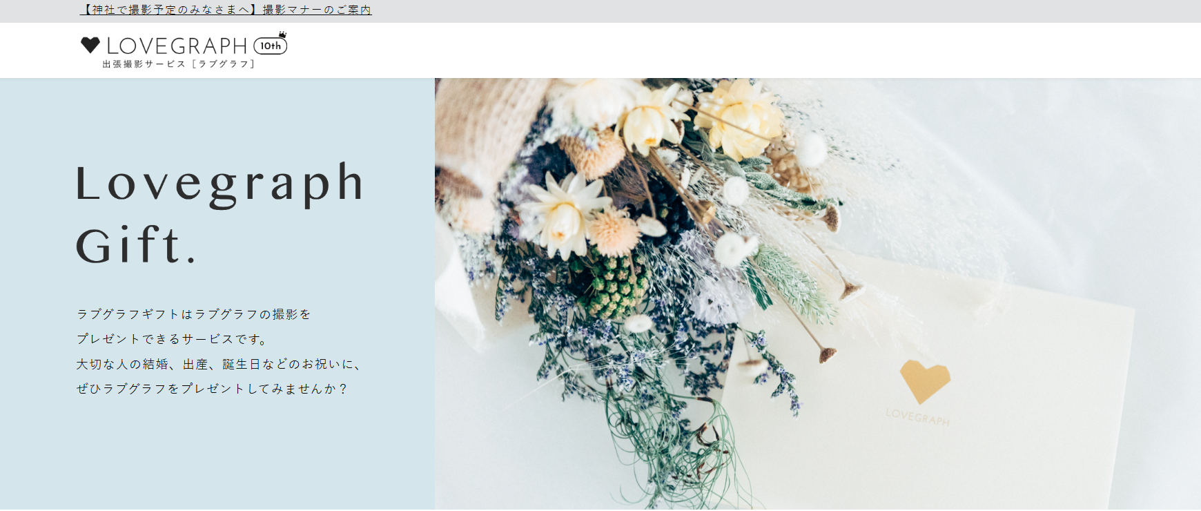 Lovegraphには「撮影ギフト」もあり、両親へのプレゼントや誕生日祝い、出産祝いとしても選ばれています。