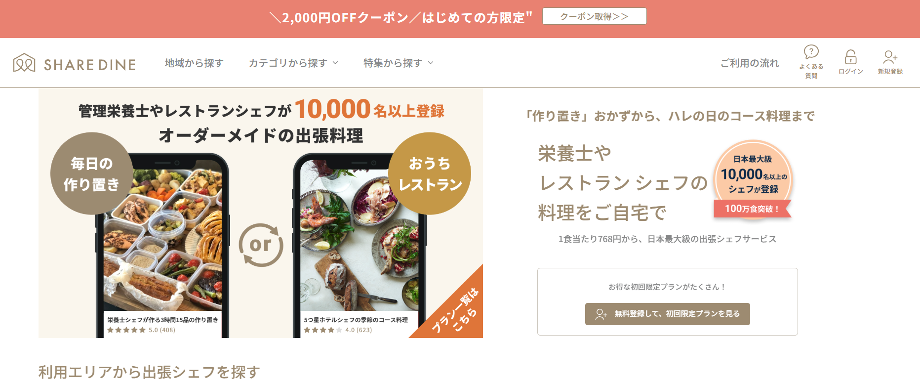 シェアダインは、一流レストランシェフや管理栄養士、調理師、保育園の給食室スタッフなど、食の専門家が8,000名以上登録している出張シェフサービスです。