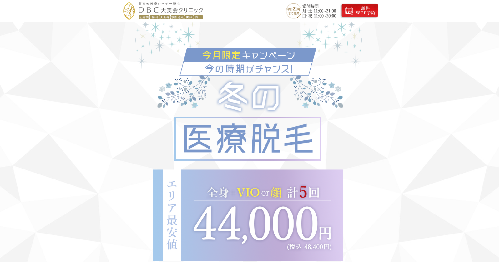 大美会クリニックは、医療レーザー脱毛を提供するクリニックで、複数の部位に対応しています。特徴的なのは、医療資格を持つスタッフによる施術管理と、通いやすさに配慮した立地や営業時間です。