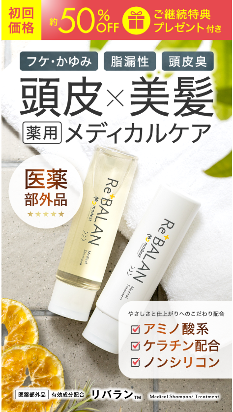 フケやかゆみ、脂っぽい頭皮に悩んでいませんか?毎日のシャンプーだけでは改善しにくい頭皮トラブルもあります。そんな悩みに応えるアイテムとして注目されているのが、ReBALAN(リバラン)のシャンプー&トリートメントです。