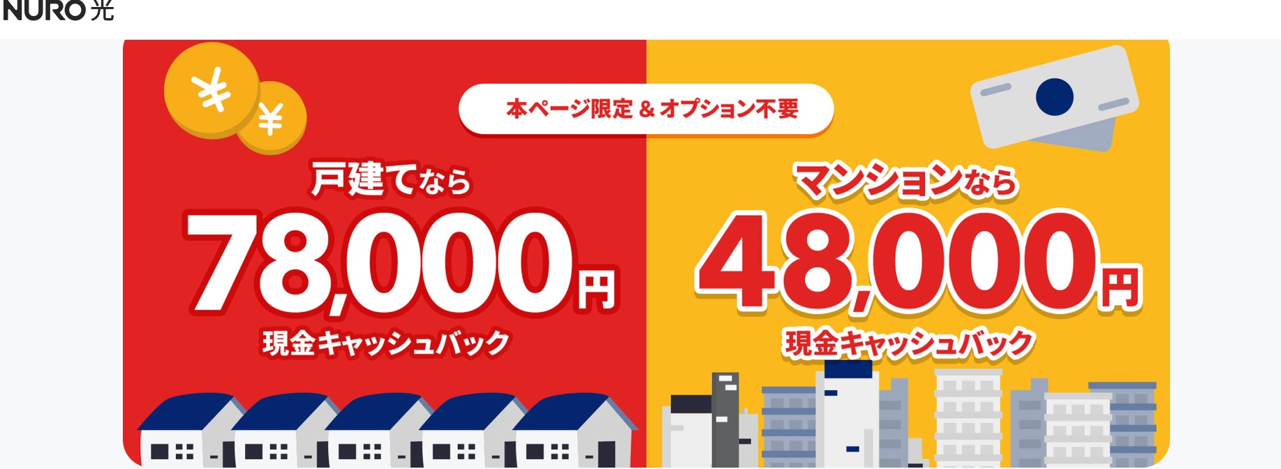 NURO光の公式キャッシュバックは、戸建てプラン契約者が対象です。条件は以下の通り: